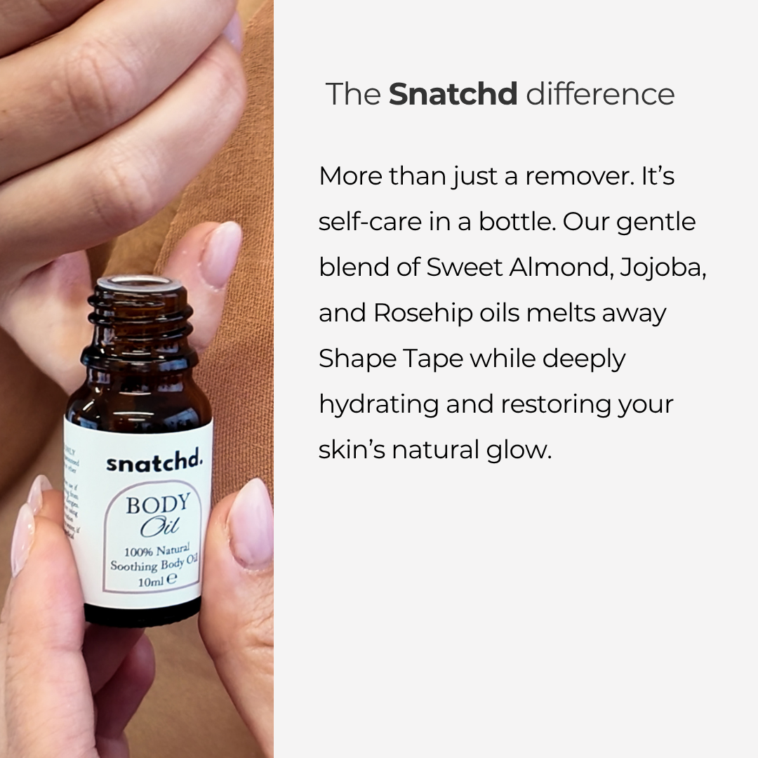 100% Natural Soothing Body Oil for effortless, pain-free removal of shape tape.