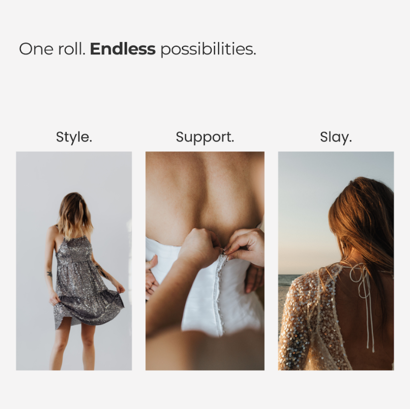 Your premium choice for secure, discreet support with added flexibility. Lift Tape Luxe uses a next-generation bio-glue adhesive that’s kinder to skin, fully brushed across the tape for even coverage, and allows you to lift, adjust, and re stick without losing hold. Breathable, flexible, and designed to shape and lift while staying comfortable all day.